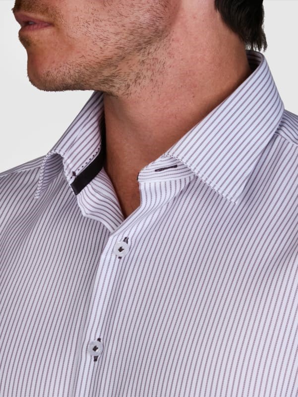 Abelard Slim Fit Sand Lerici Herringbone Stripe Business Shirt