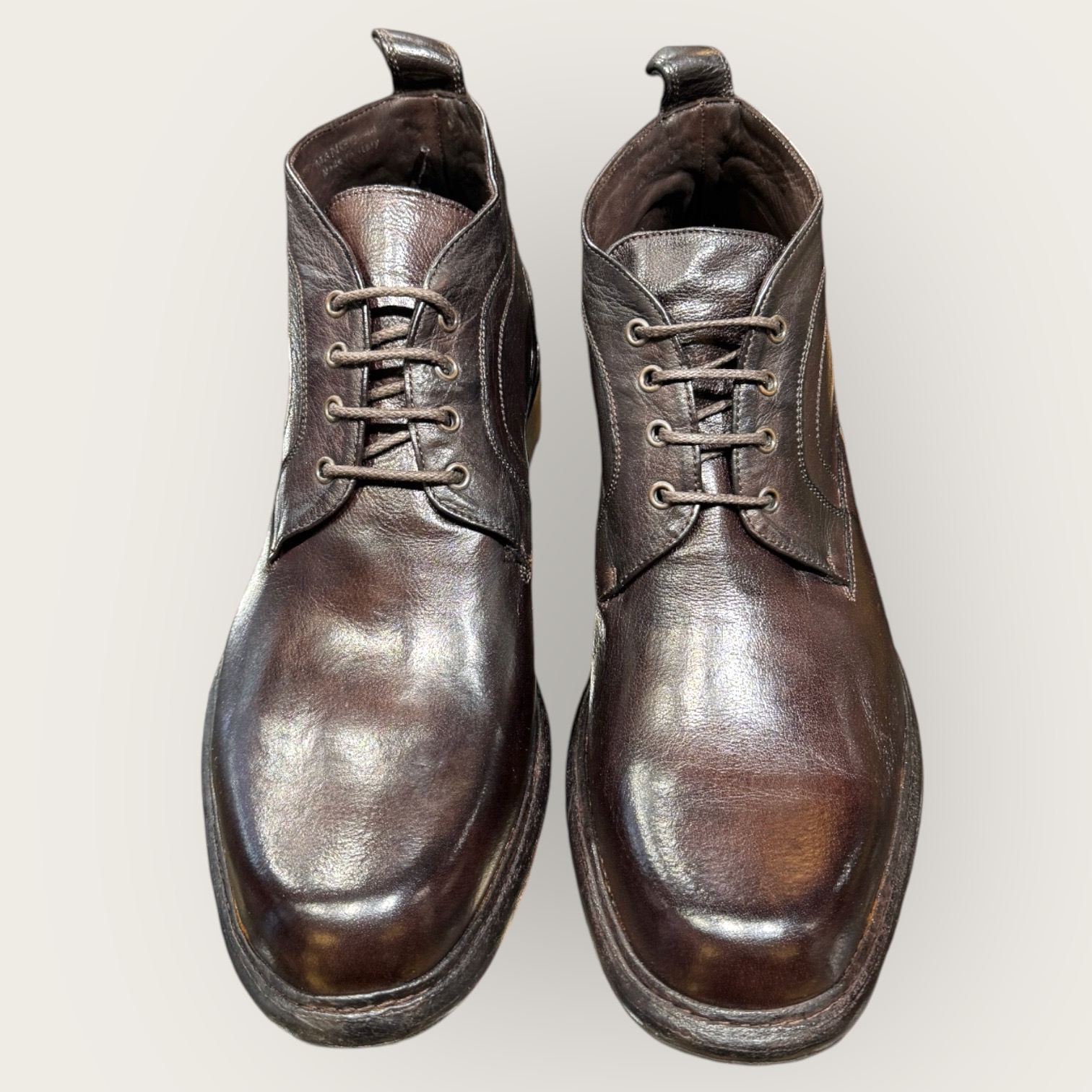 Calf leather upper on full leather Blake stitched soles, with Vibram half sole and heel.