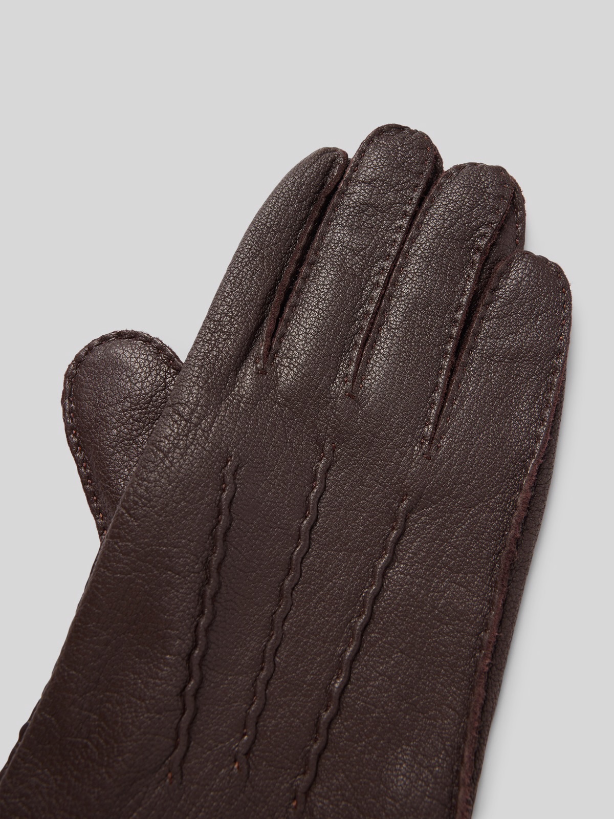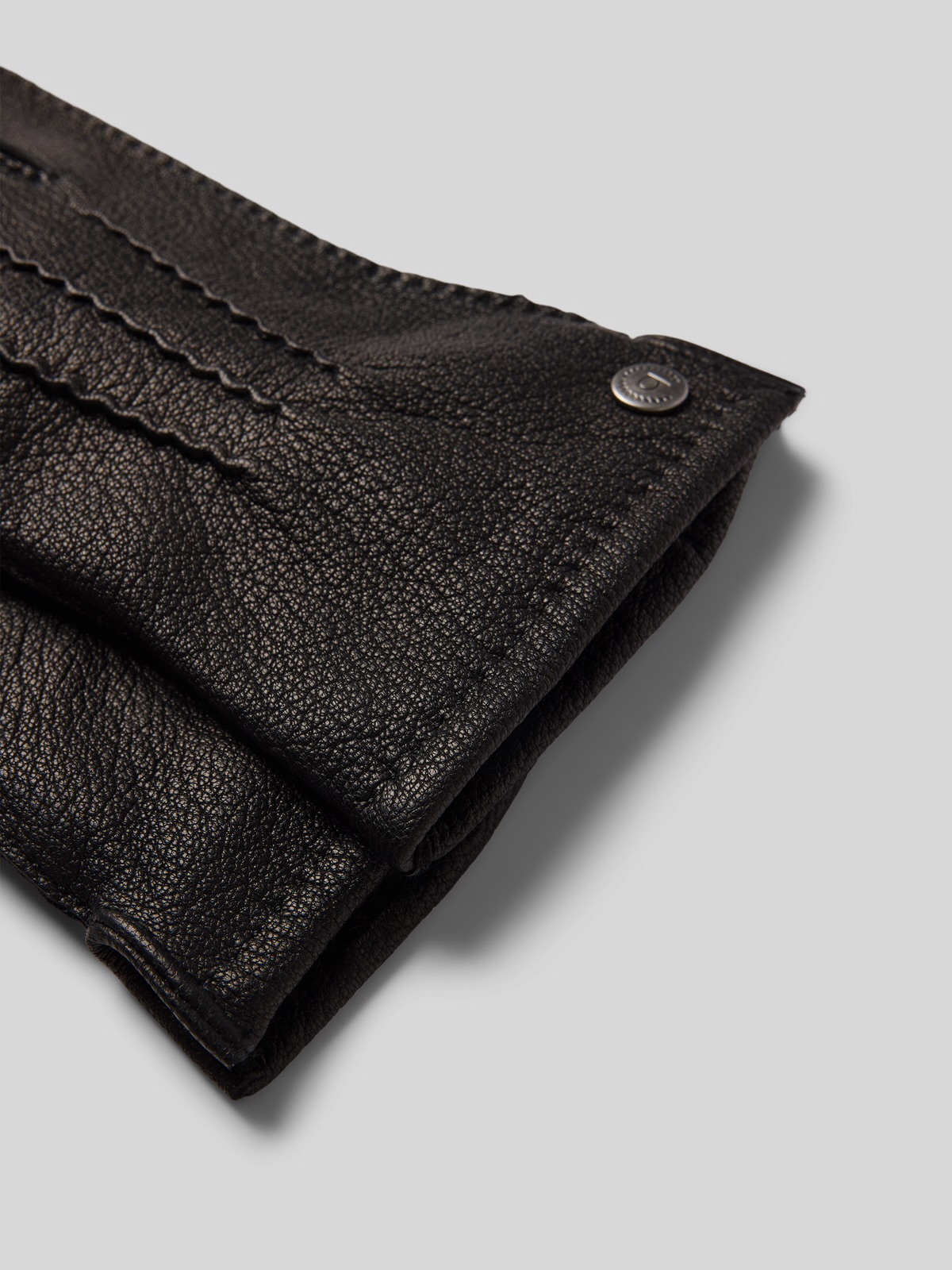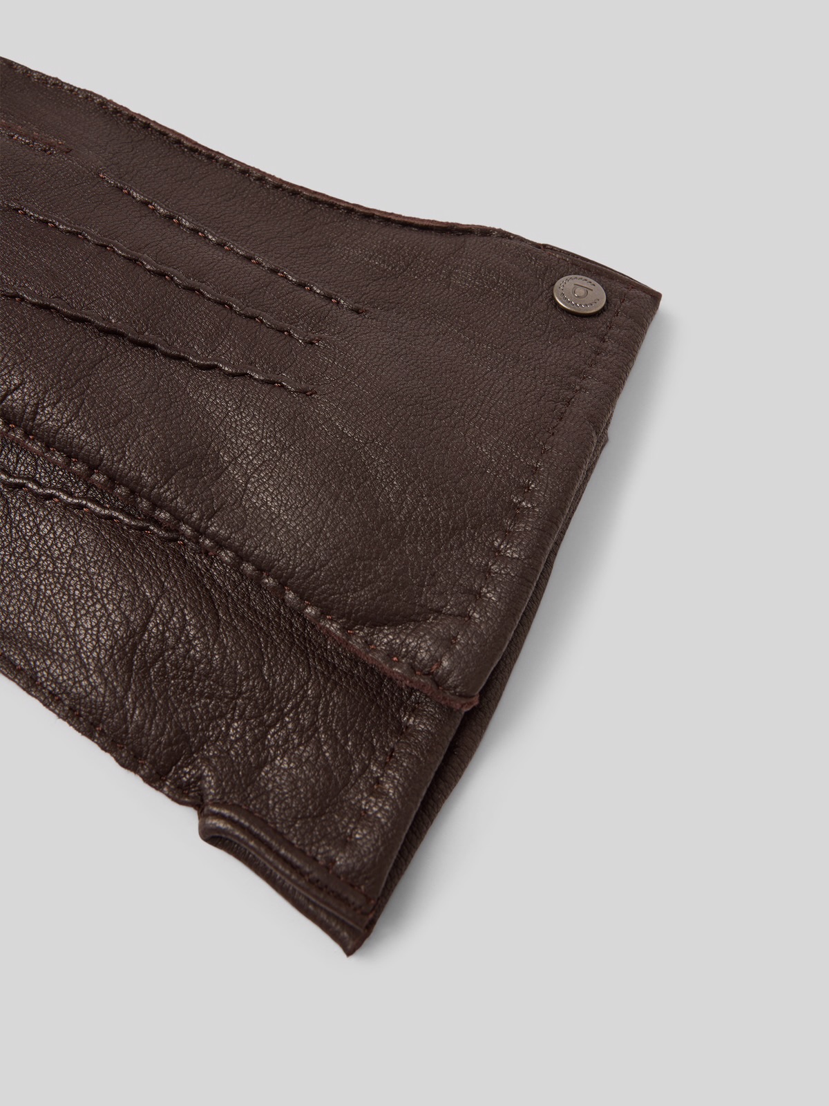 Warm and comfortable leather gloves with a soft lining of 70% wool and 30% acrylic.
