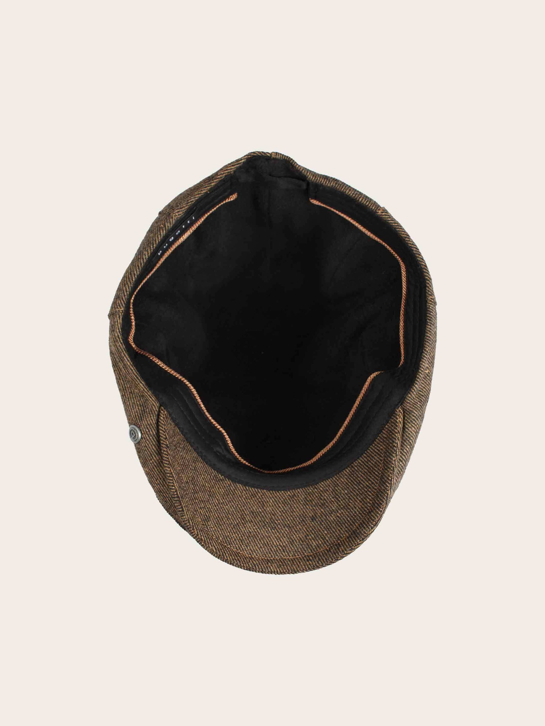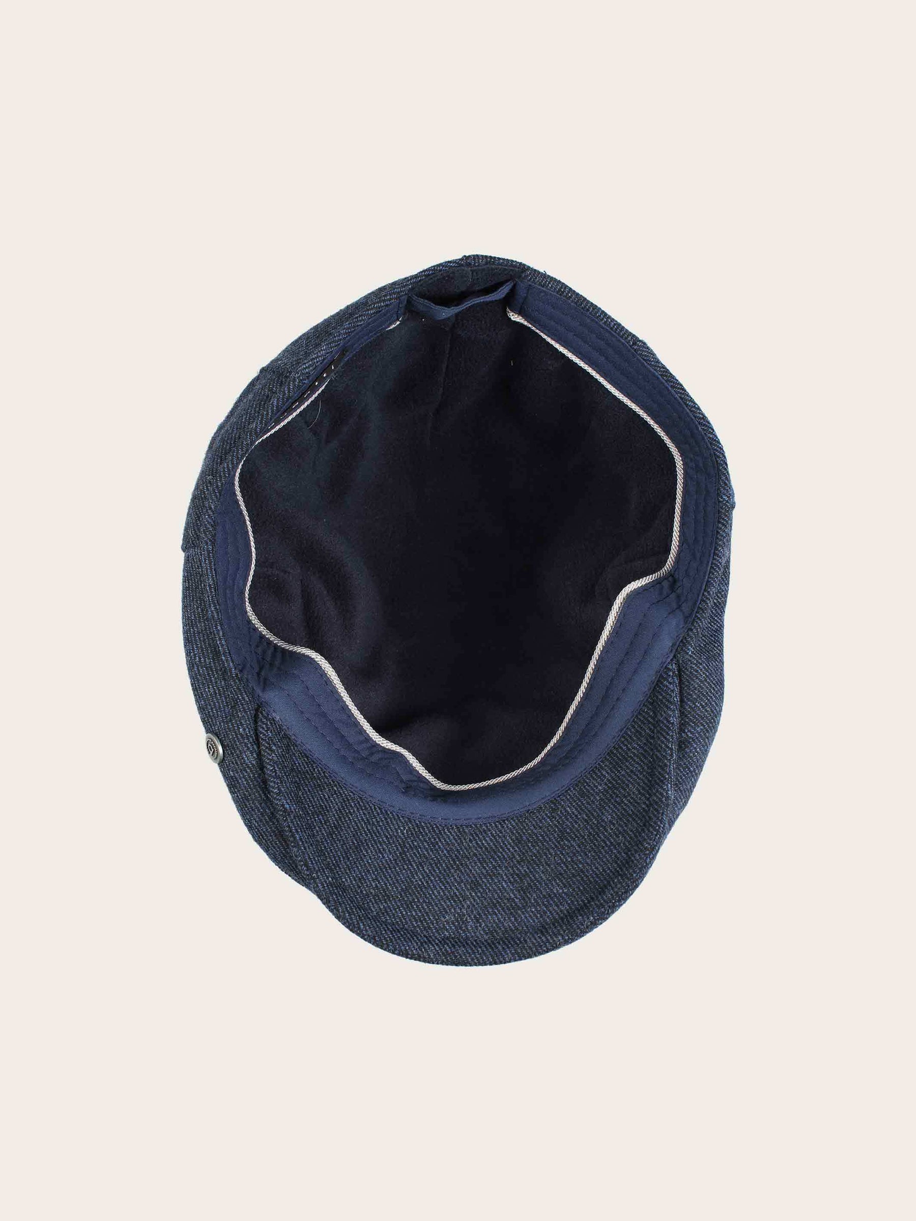 ’Cheesecutter’ flat cap in a 50/50 wool and polyester blend.