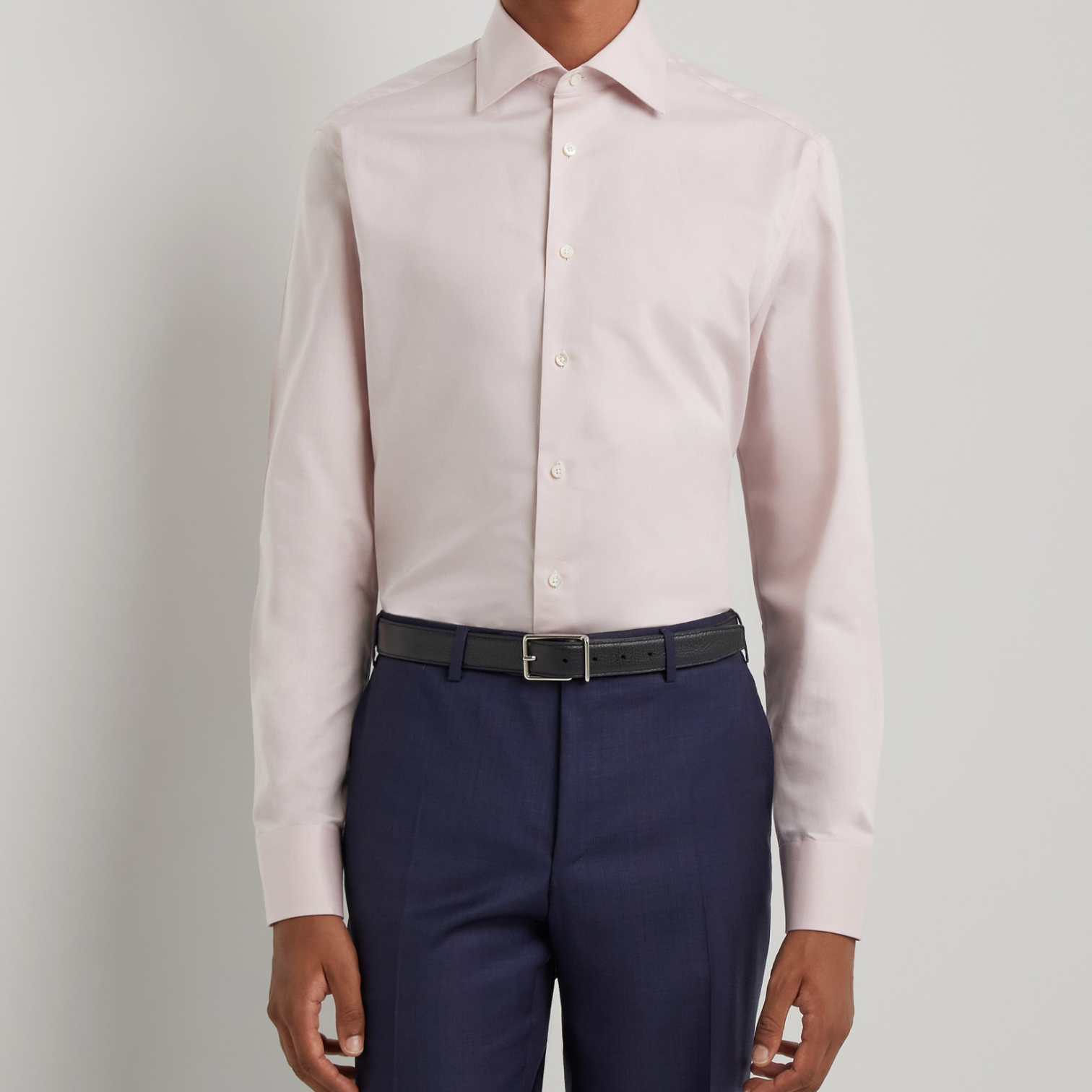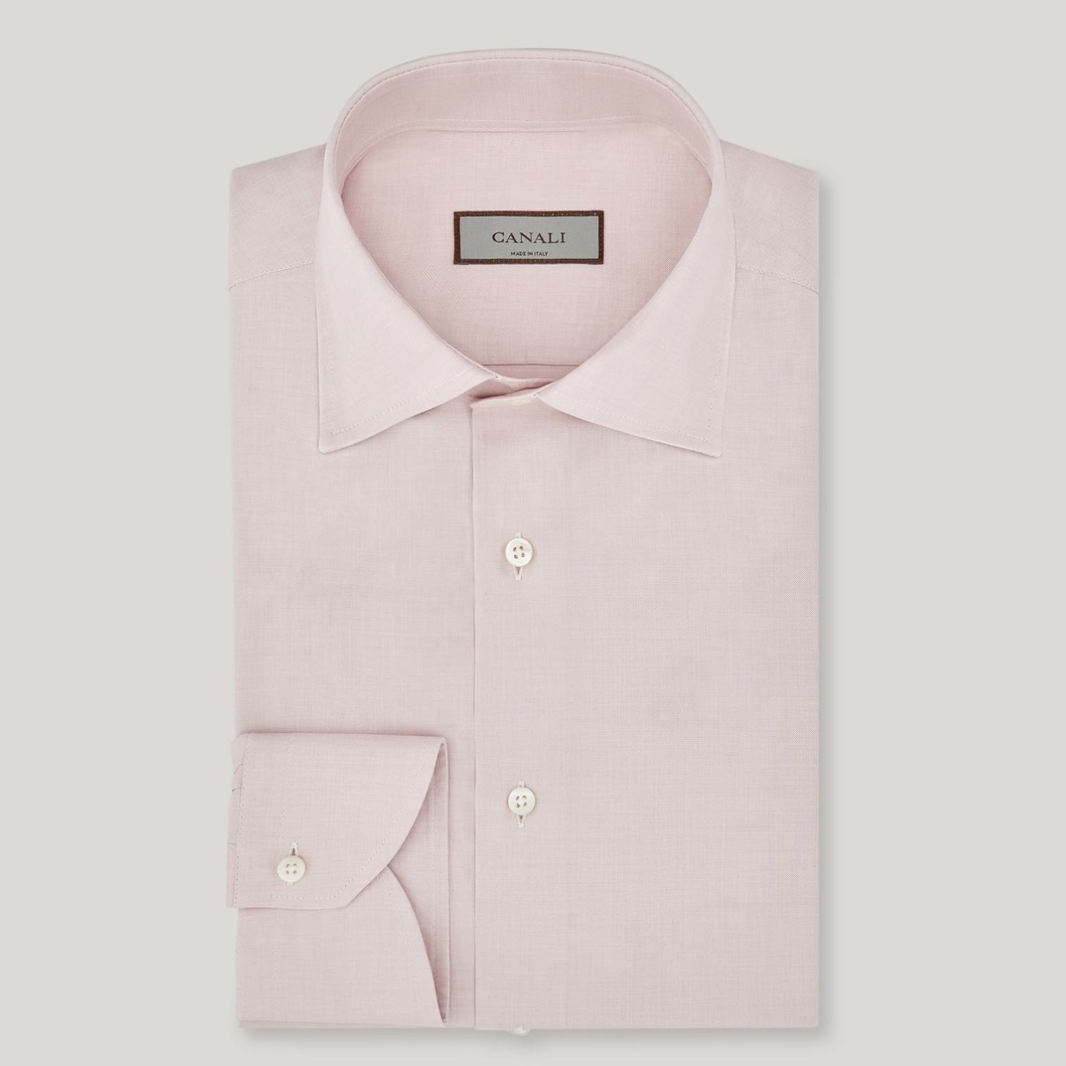 Crisp, pale pink pure cotton shirt from Canali in a fine textured weave.