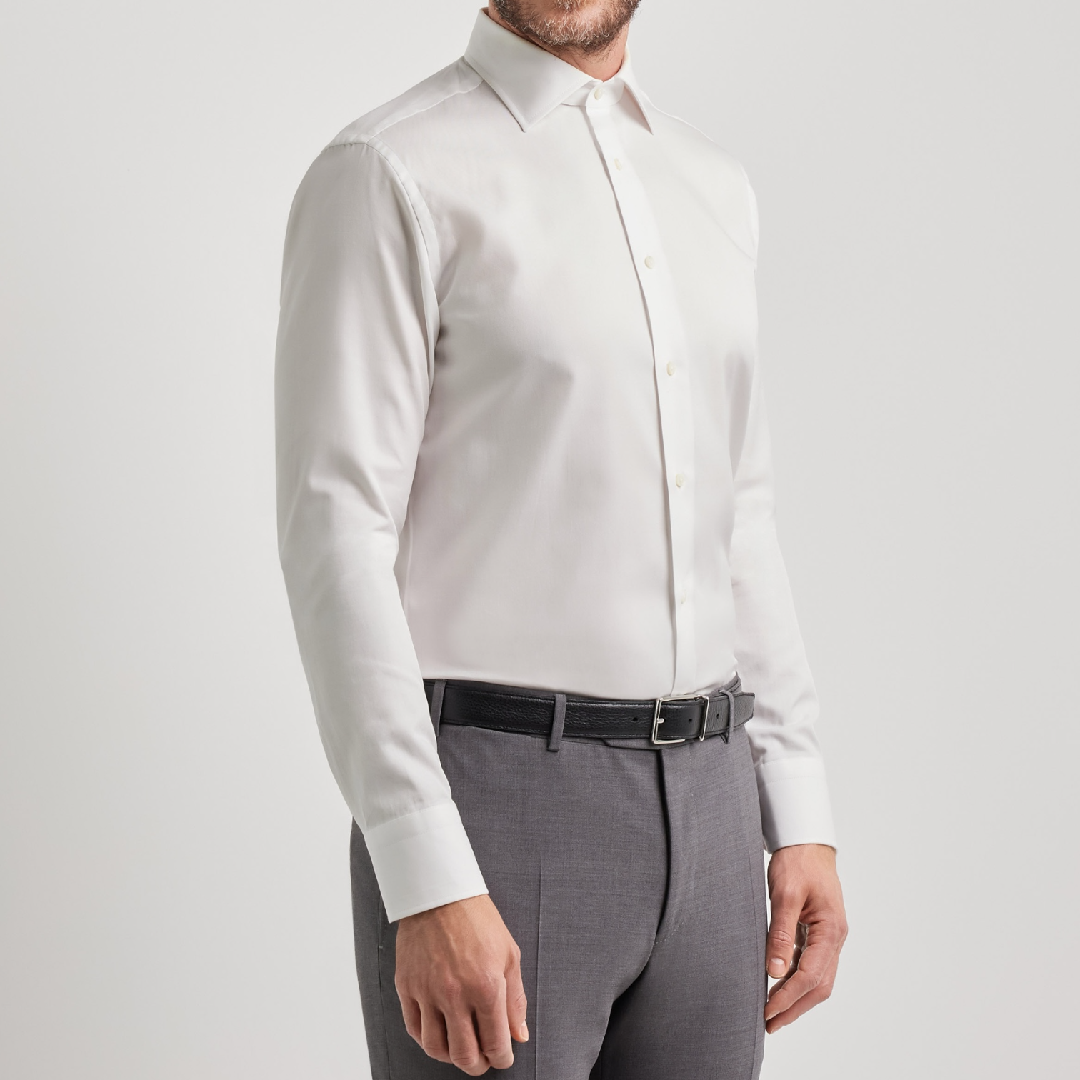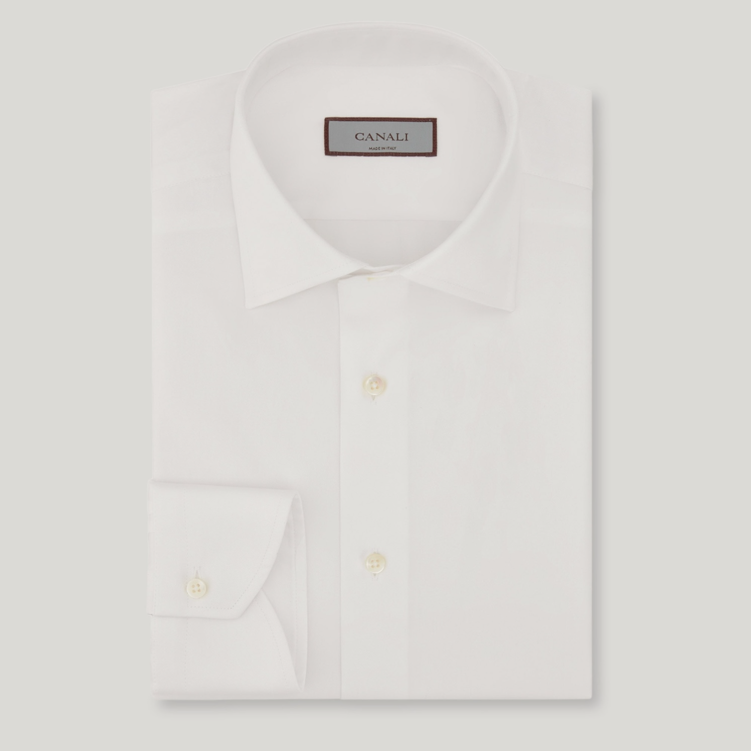 Crisp, white pure cotton shirt from Canali in a fine textured weave.