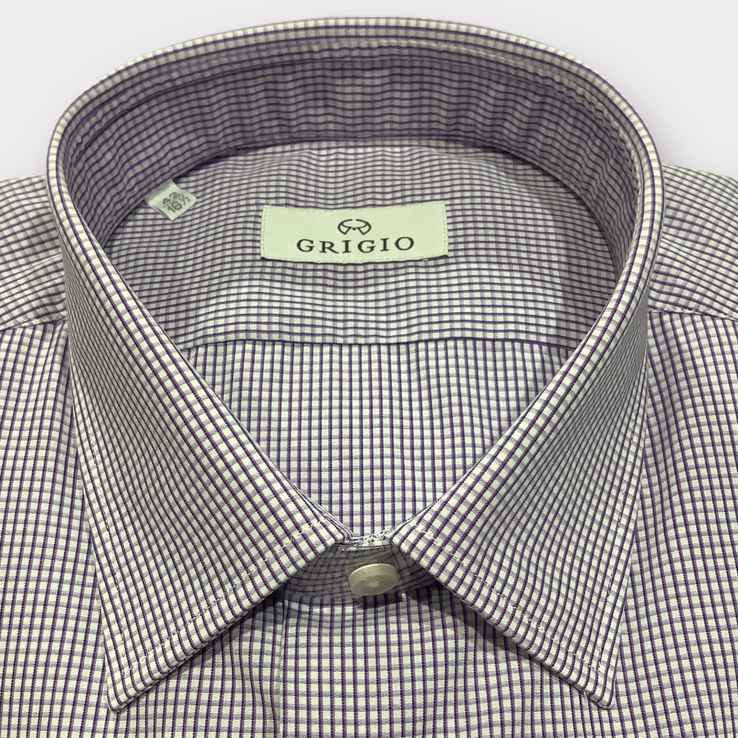Here we have a shirt in 100% cotton poplin with a Purple micro check pattern.