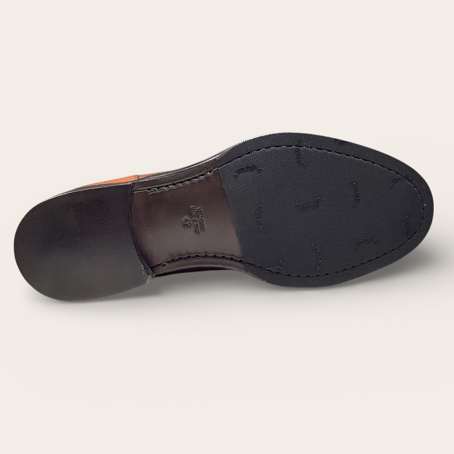 Blake construction ensures strength, flexibility and lightness thanks to a single stitching that joins all the shoe’s elements. The Vibram rubber half sole and heel provide stability and grip on smooth paved surfaces, and reduces wear on the leather outsole.